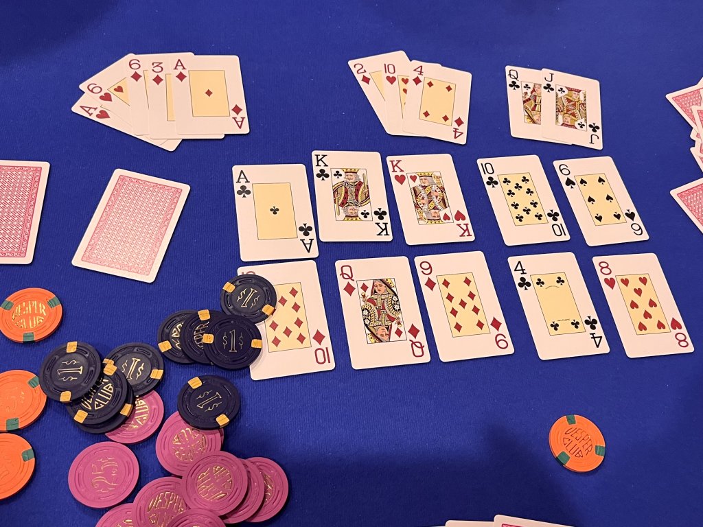 First hand was a three- or four-way all in…Vesper Club-inspired action or is it the players? You be the judge. No wrong answer!