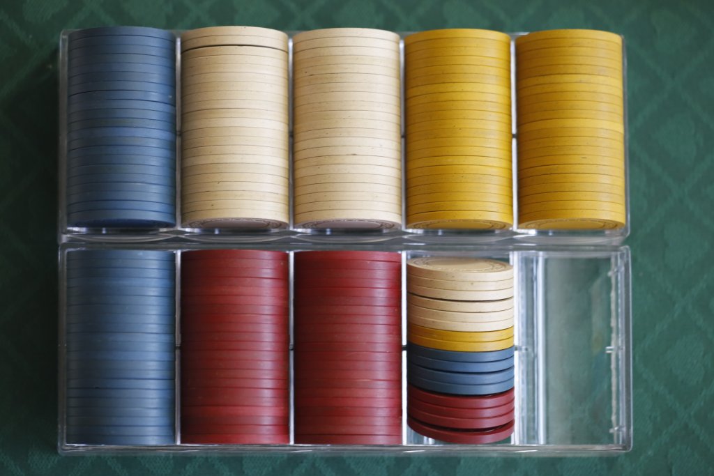 40+ spares in 4 different colors. Weight between 8g and 8.5g/chip, a little different from color to color.