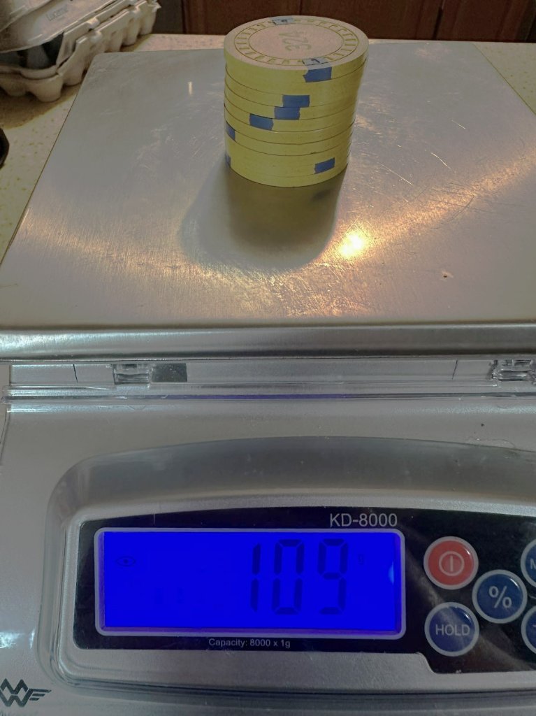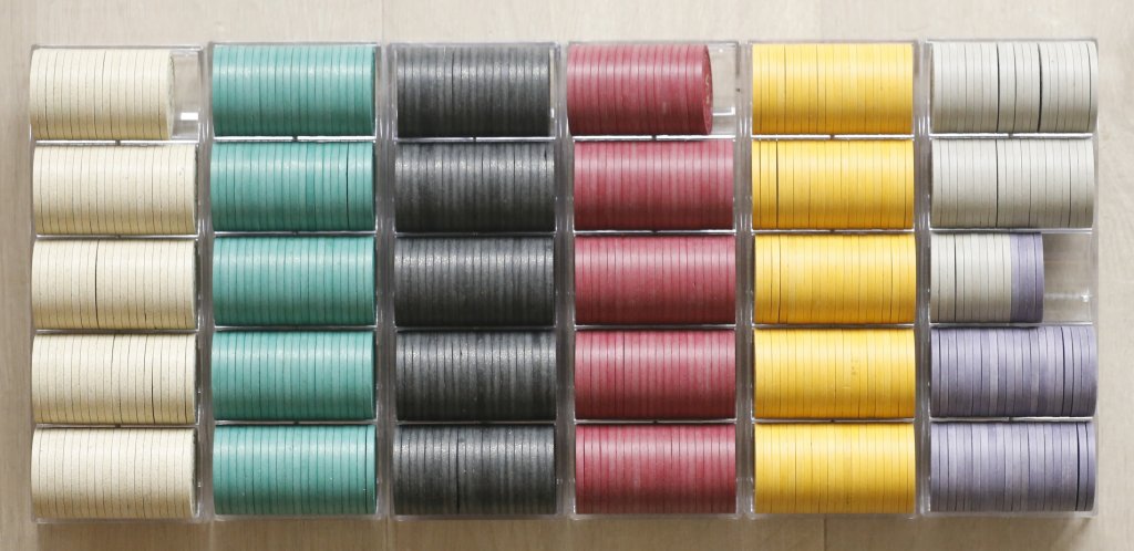 I thought about relabelling the green ones as Dragonara quarters because the colors were a good match. And most of my Dragonara inlay chips are only about 8.5g. But that was back when I thought I needed 120-160 quarters, and I only have 90. I'm getting past that now as my last few games I've only been putting 60-80 quarters on the table, and the games are just fine with that number.
