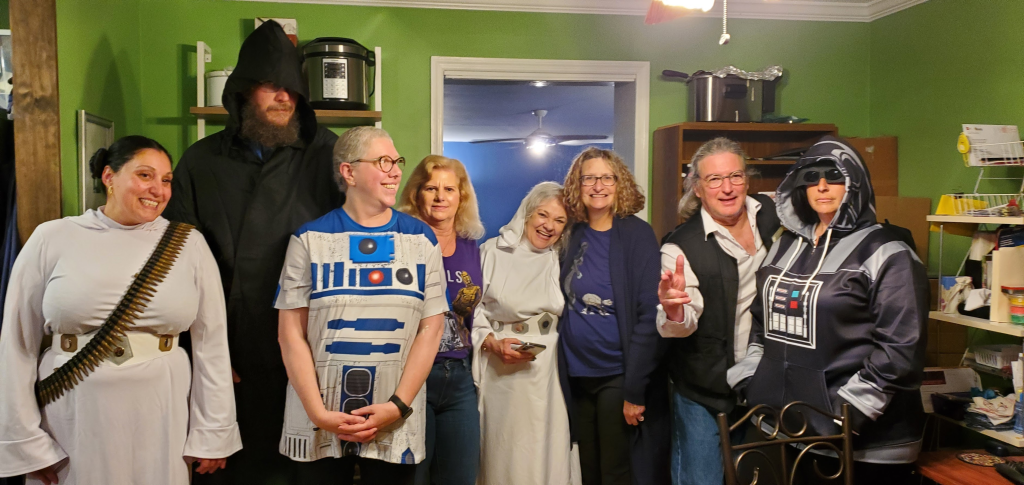 A number of players got into the theme (not all are shown here, because this was taken on a break, and smokers gotta smoke and drinkers gotta pee).