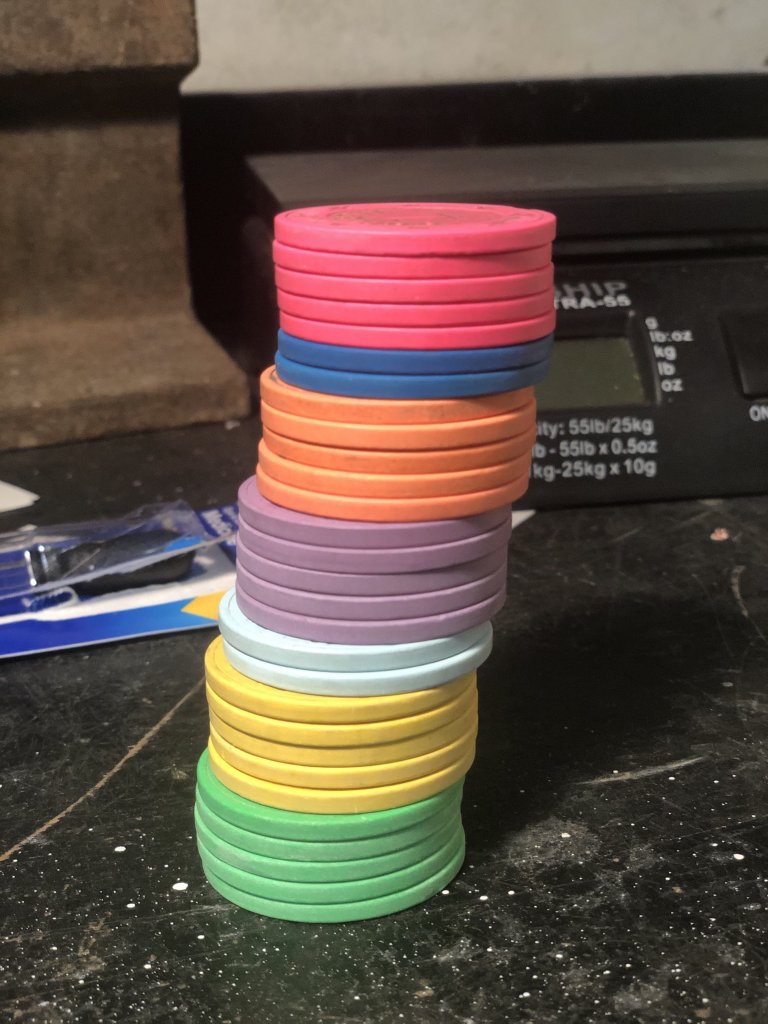 CPC cash/tourney set that I'm going to order either at the end of the year or beginning of next, just need to get the artwork files and finalize the colors and edge spots. I have my 44mm cash set also pending from