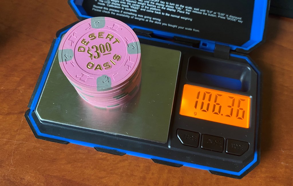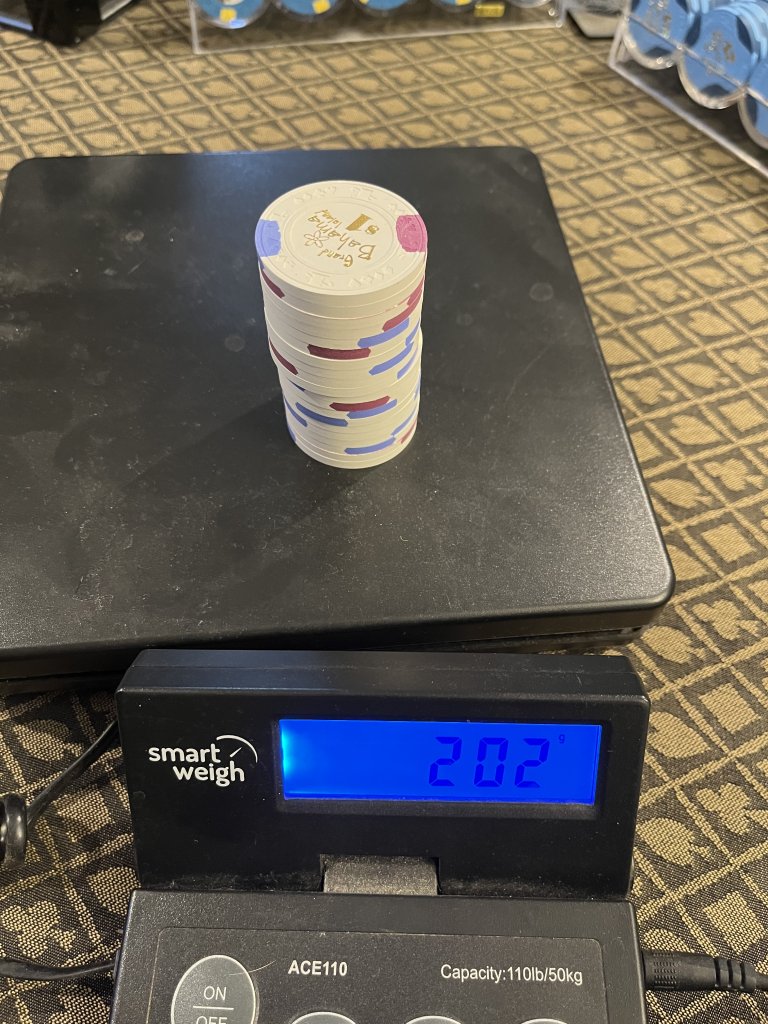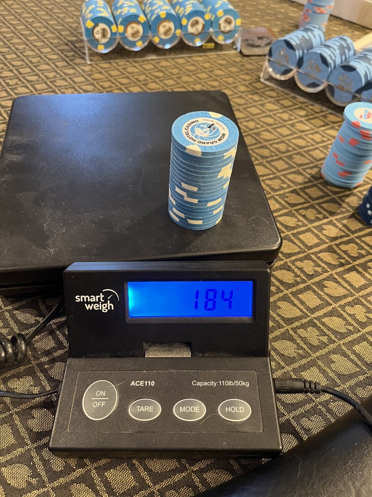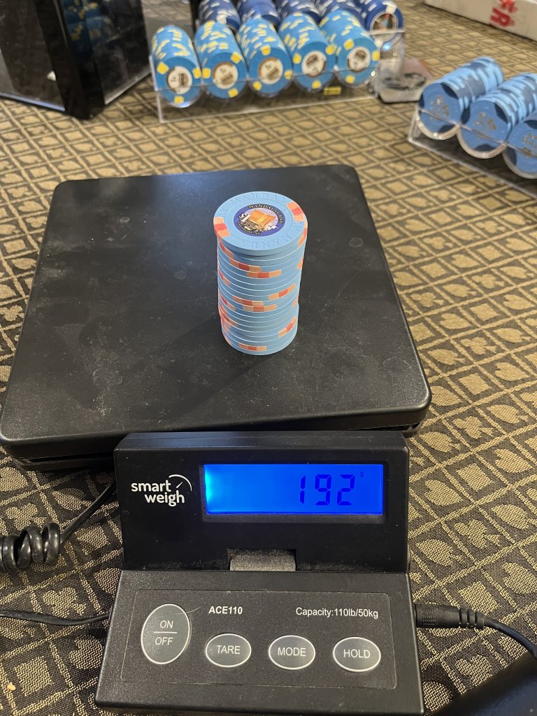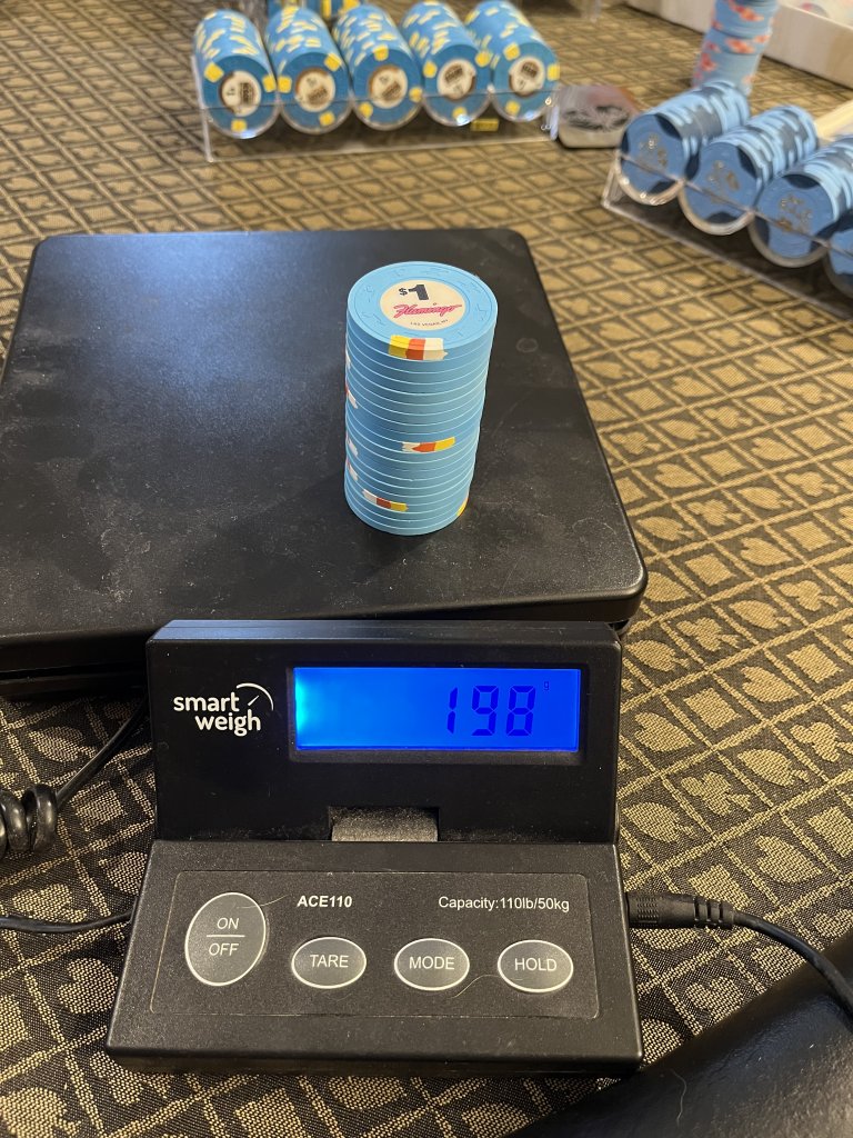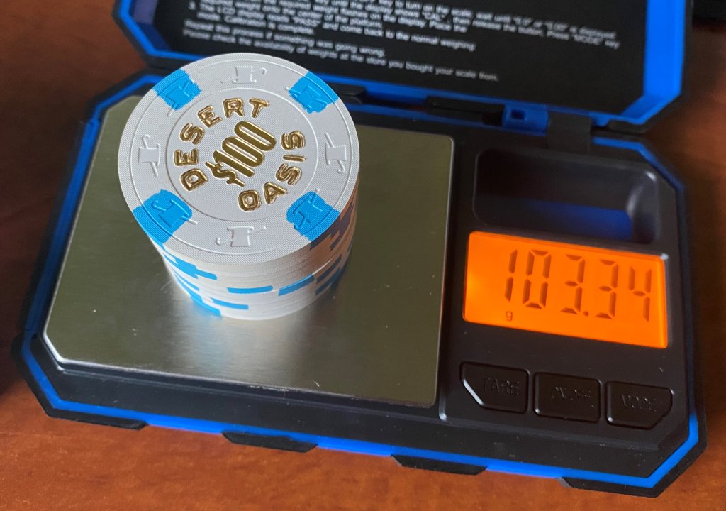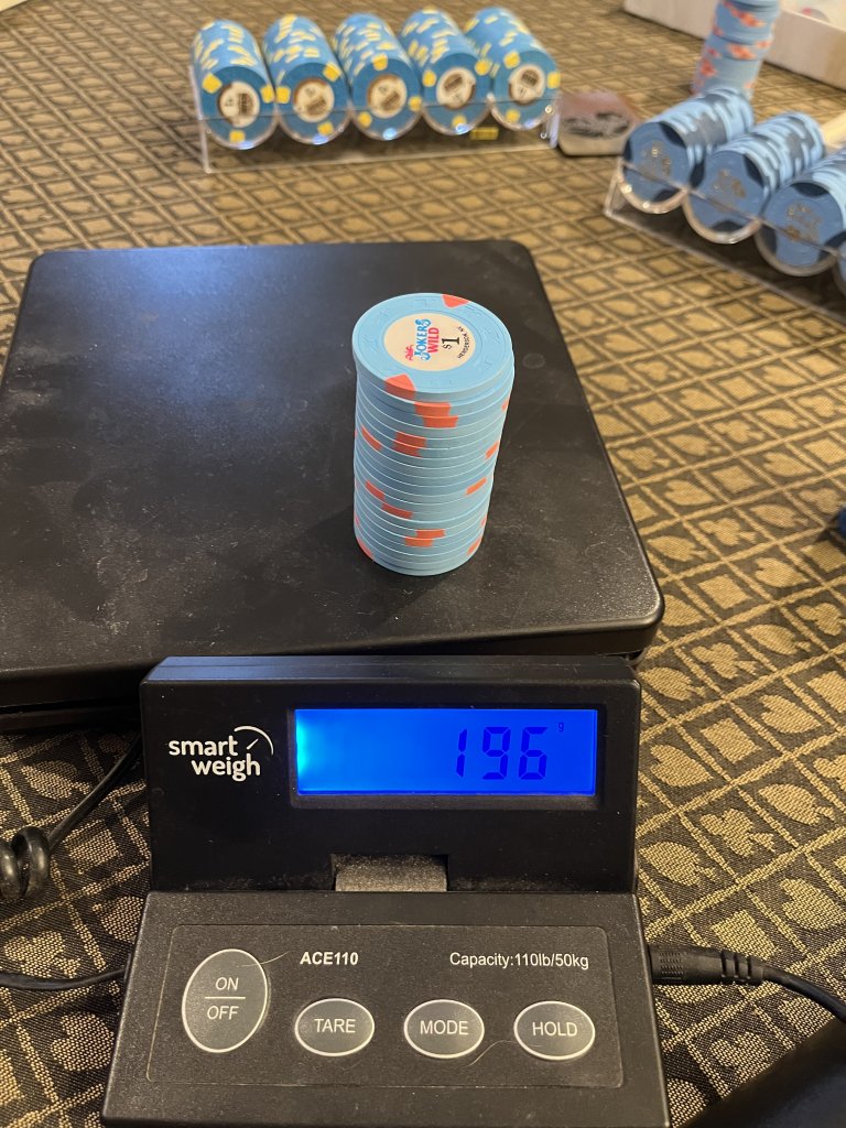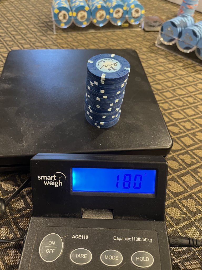 Example the Diamond Jack chips for sale soon weigh 10+ grams for tournament rhc chips, those chips were produced in 2005 clearly since casino opened in 2006 summer, so the .5% limit right?! No, 10+ grams is highly leaded esp being rhc and the cash chips weigh in the high 9 grams most of them in which these same colors nowadays are the high 8’s low 9’s. Which makes them moderately leaded.