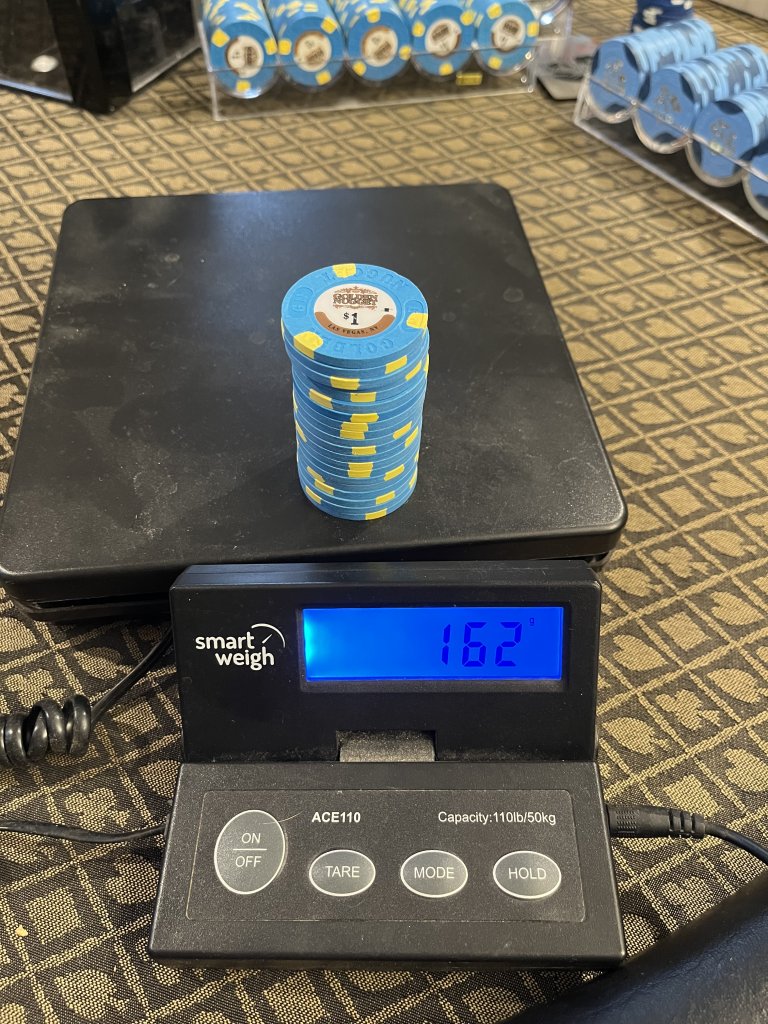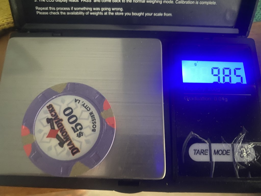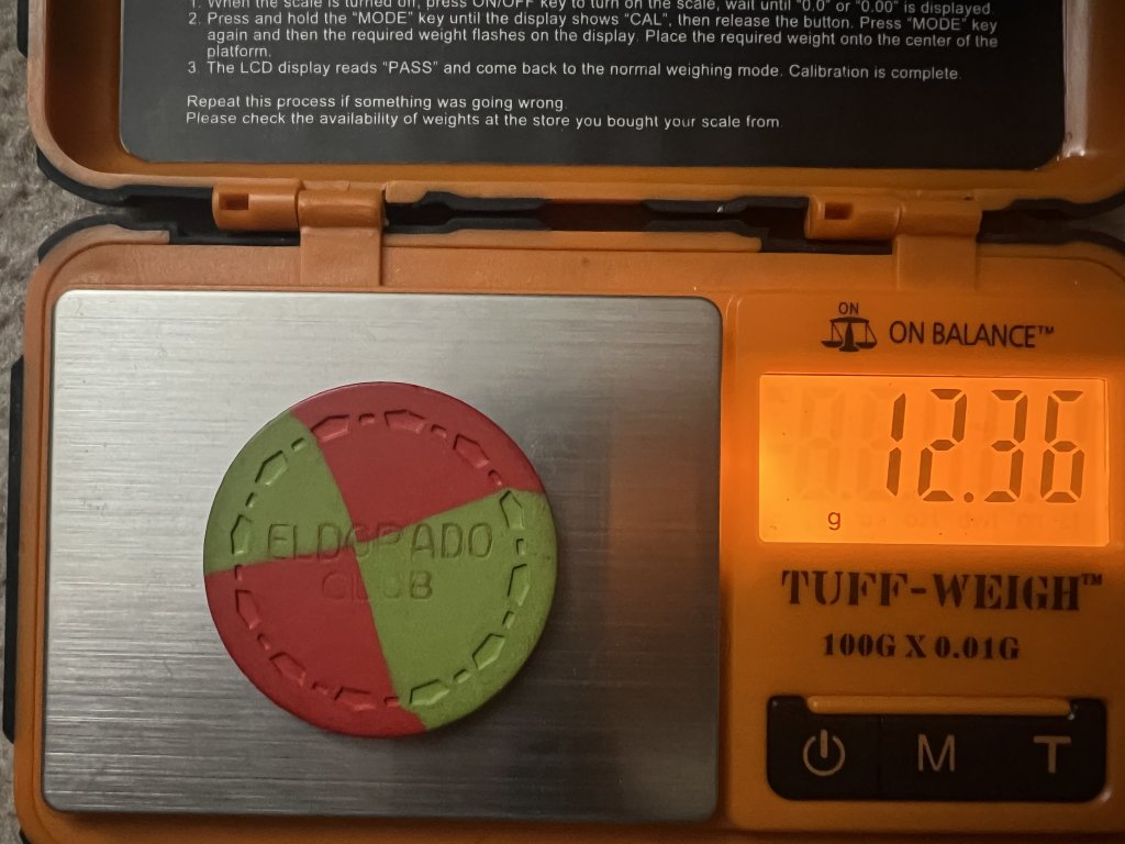 I get that this is a different color but 12+ grams? Doesn't say weighted in the order. I will try to find other yellow TRK from the same era with similar spot pattern. I have a Comanche club $5 and maybe a Marina Club chip somewhere in the sample stash.