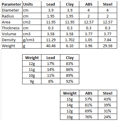And I added in 40mm plastic sluggers for fun. I know I'm making a bunch of assumptions but 40% lead would be a very heavy chip!