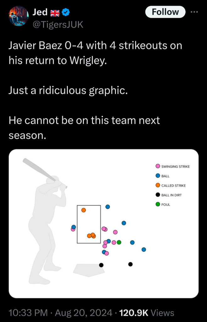 Javier Baez says, "Hold my beer."Every day player. The Yankees leadership is so terrifically bad that is shocking they’re actually winning games.