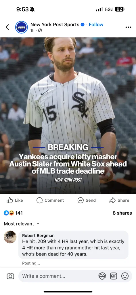 Also Cashman: “Judge is out so we got a corner infielder who’s hitting .196”