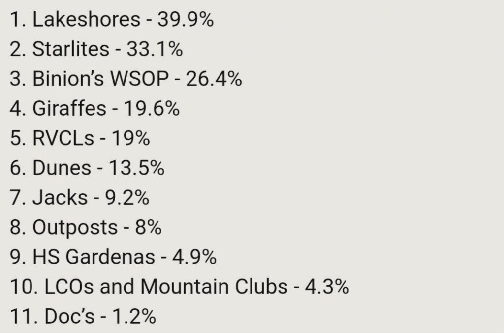 Extremely surprised about the standing of the Doc’s set, but most of the others make sense.
