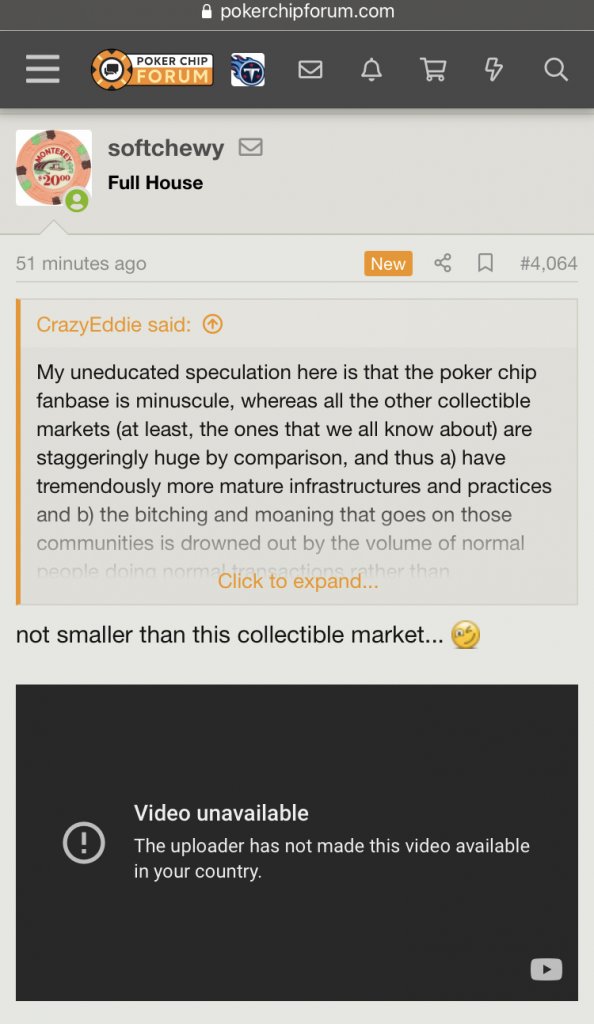 With this new market and people who didn't get in on the ground level that option really is no longer there. So yes the guys that own tons of chips are sitting back laughing and enjoying all of this (literally laughing as they watch their profit margins skyr-ocket!!) But what is being lost here is that opportunity and sense of community that his hobby once had, even in my less than 2 years in the hobby there have been drastic changes!