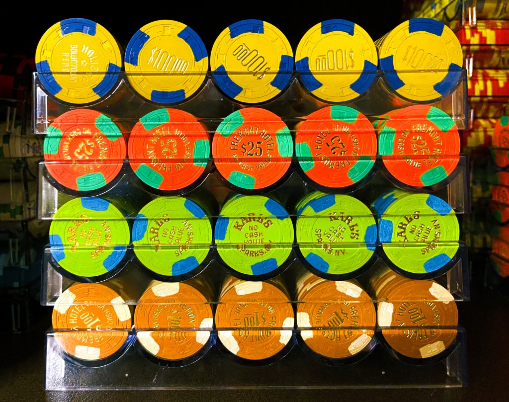Those Karl’s green chips are HOTtttPlaying around with a “mad hatter’s hotstamp set”, 1 to 100 from bottom to top, where the colors are are all topsy turvy. The Karl’s NCV serves as the $5. The hundo is C&J, but will have to suffice till I find a THC replacement.
