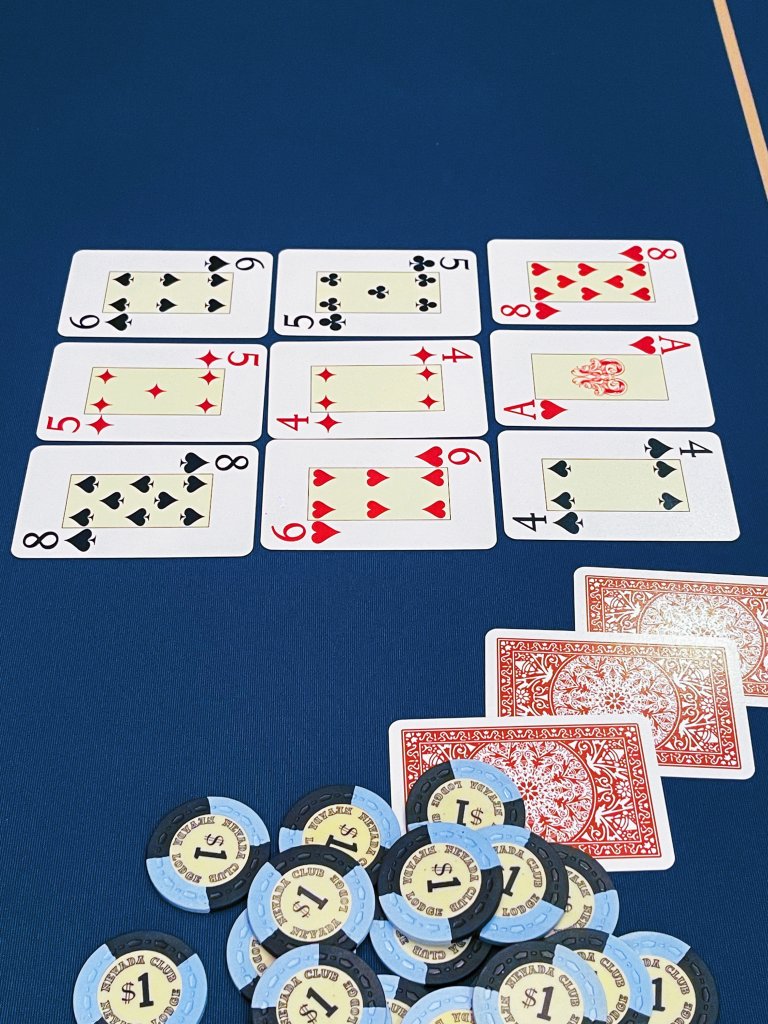 The pictures below are from last week playing this game. It’s a pot builder for certain!
