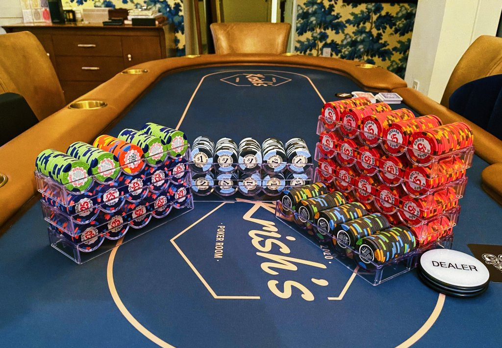 For me personally, I love bright, almost garishly covered chips, a very nice table with a custom logo, maybe even lights and usb ports for charging.