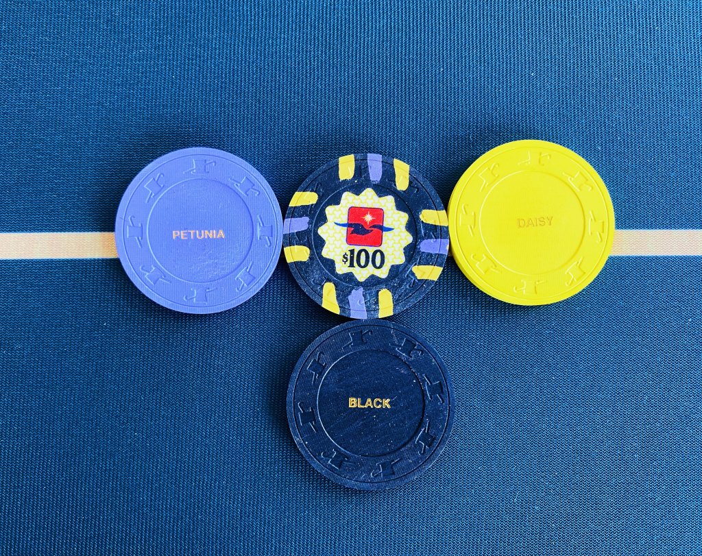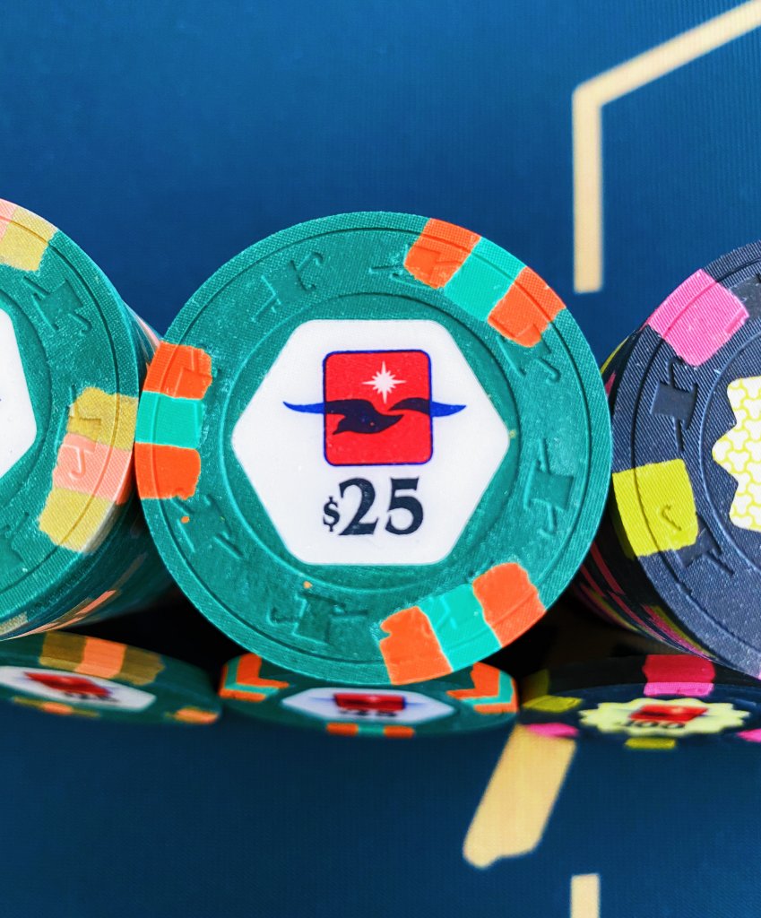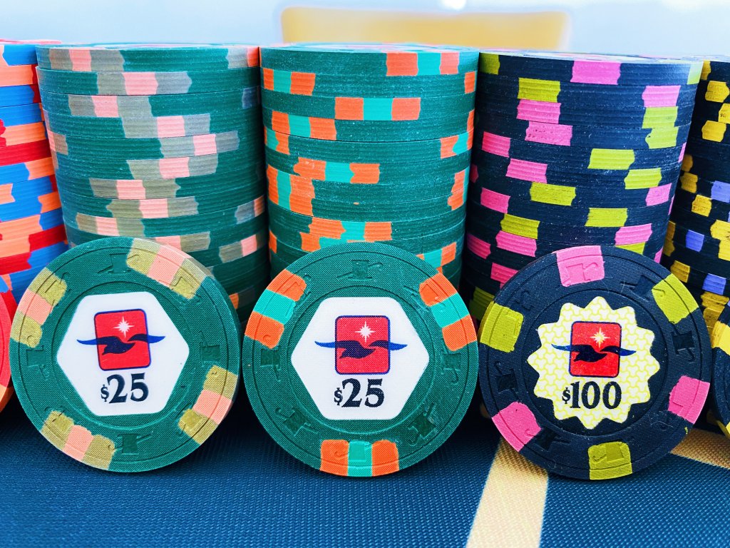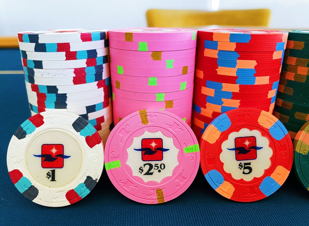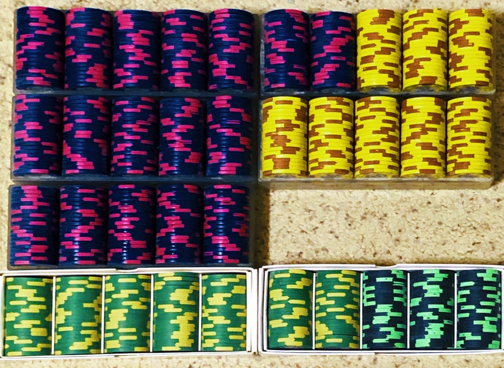 These chips have been with the same owner for 46 years, he was one of the dealers who worked at the card room. He was 22 at the time. For the last 25 years, they’ve been in a storage closet of his.