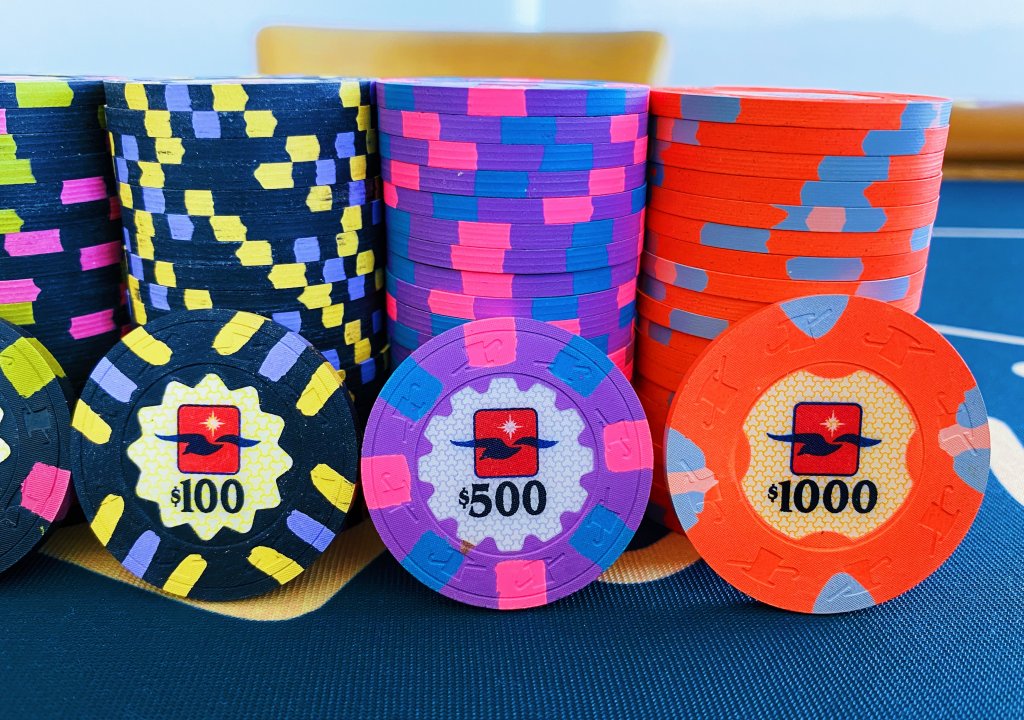 New California card room set from the Mountain Club in Tracy. So excited that I was able to find an 840-chipset of these beauties. Pr0n coming as soon as they’re cleaned — they’ve been sitting in a storage unit for 25 years.:tup:
