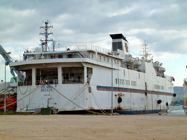 This is the last known photograph of the ship, from 2012, when it was called the ISLAND BREEZE. The picture shows a ship in disarray and neglect, a far cry from the "glistening and regal" PACIFIC STAR from almost two decades before. I haven't been able to find out if the ship was so old and used that it was decommissioned soon after.
