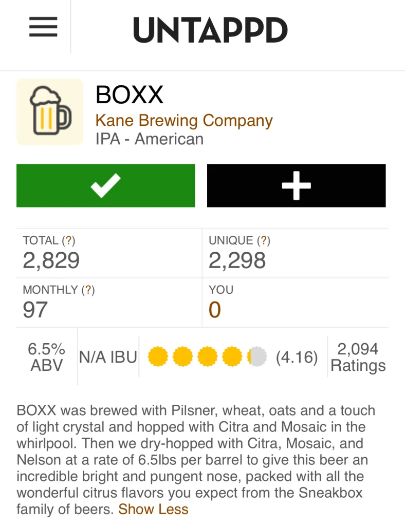 The new space they moved the taproom into a couple years ago is really nice too, if you've never been. Always a solid selection on. Getting to the taproom for you would be worth it just to grab a few bottles of things that probably don't hit distro.I have 2 local stores that regularly stock Kane now (both the staples and their new releases) so I've grown lazy, I really need to make it down to the brewery, they churn out some great beers.![]()