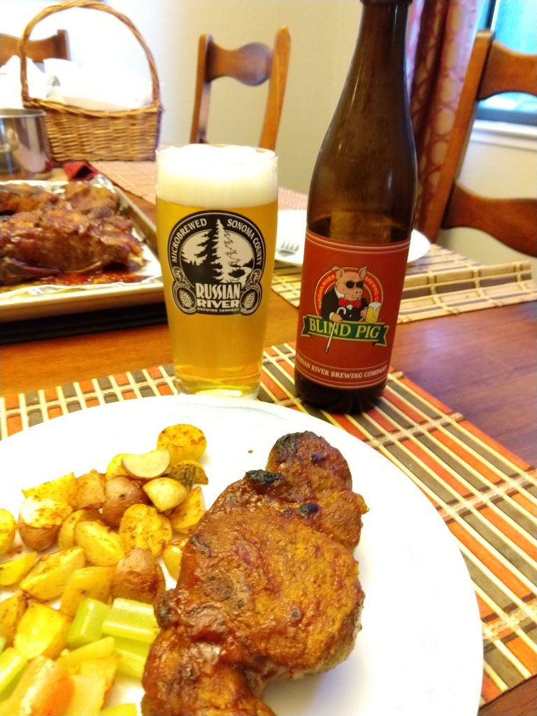 Blind Pig from Russian River brewery...goes great with BBQ pork country spare ribs.